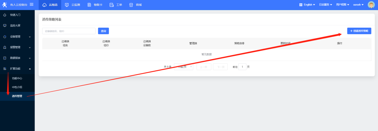 22、點擊完成,可以在透傳策略列表中看到新創(chuàng)建的透傳策略。