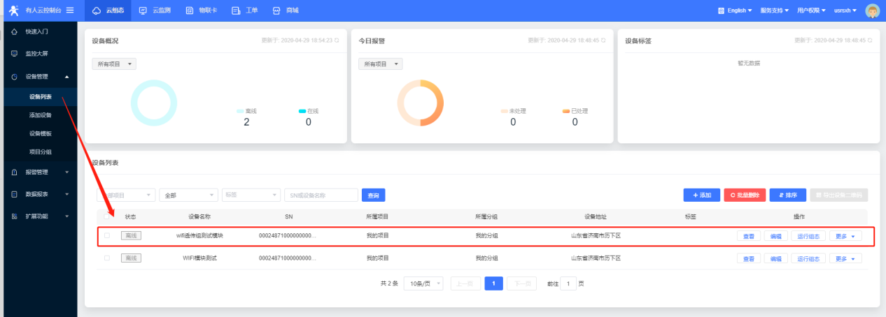10、設(shè)備列表內(nèi)可以看到剛剛添加的設(shè)備。