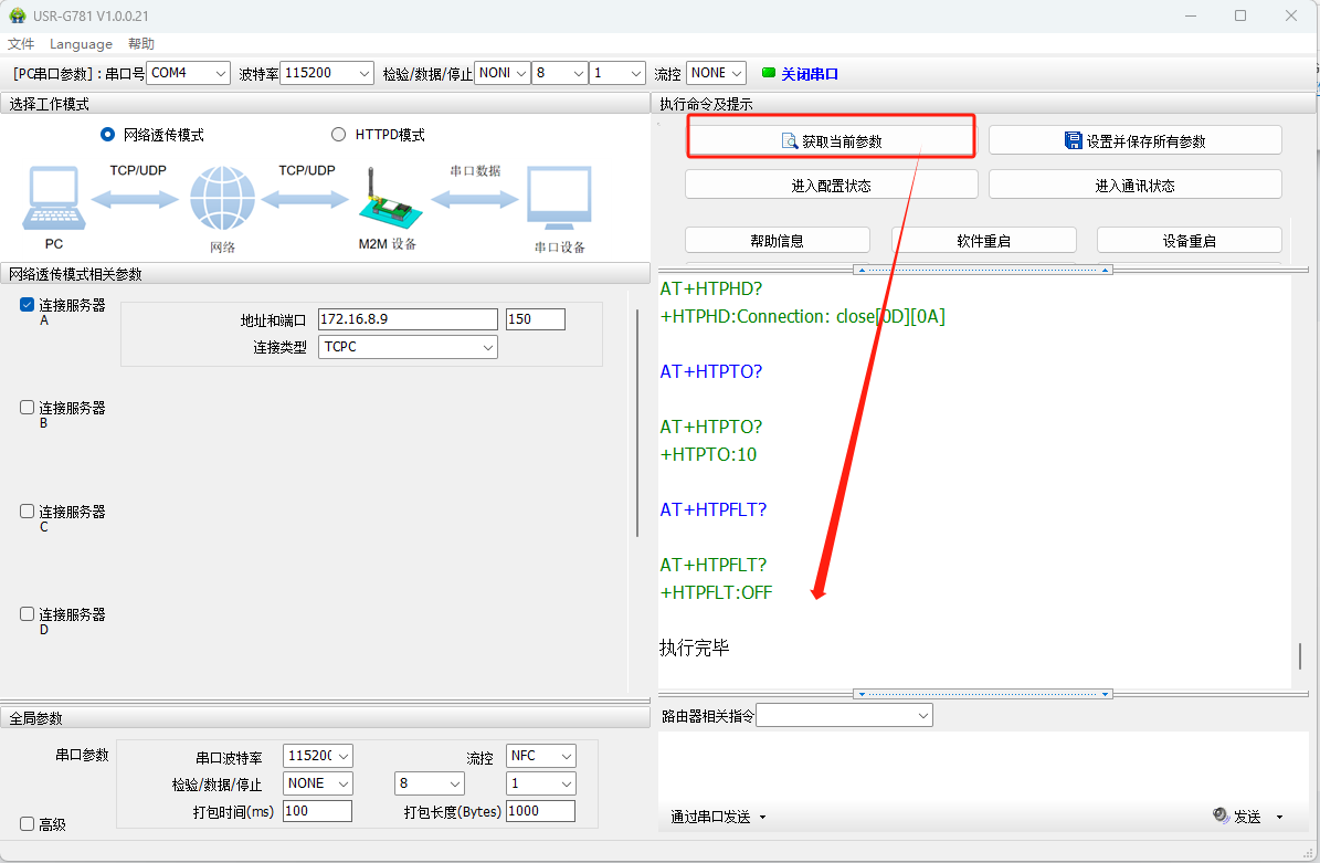 點擊進入配置狀態(tài),發(fā)送+++a,設備回復OK