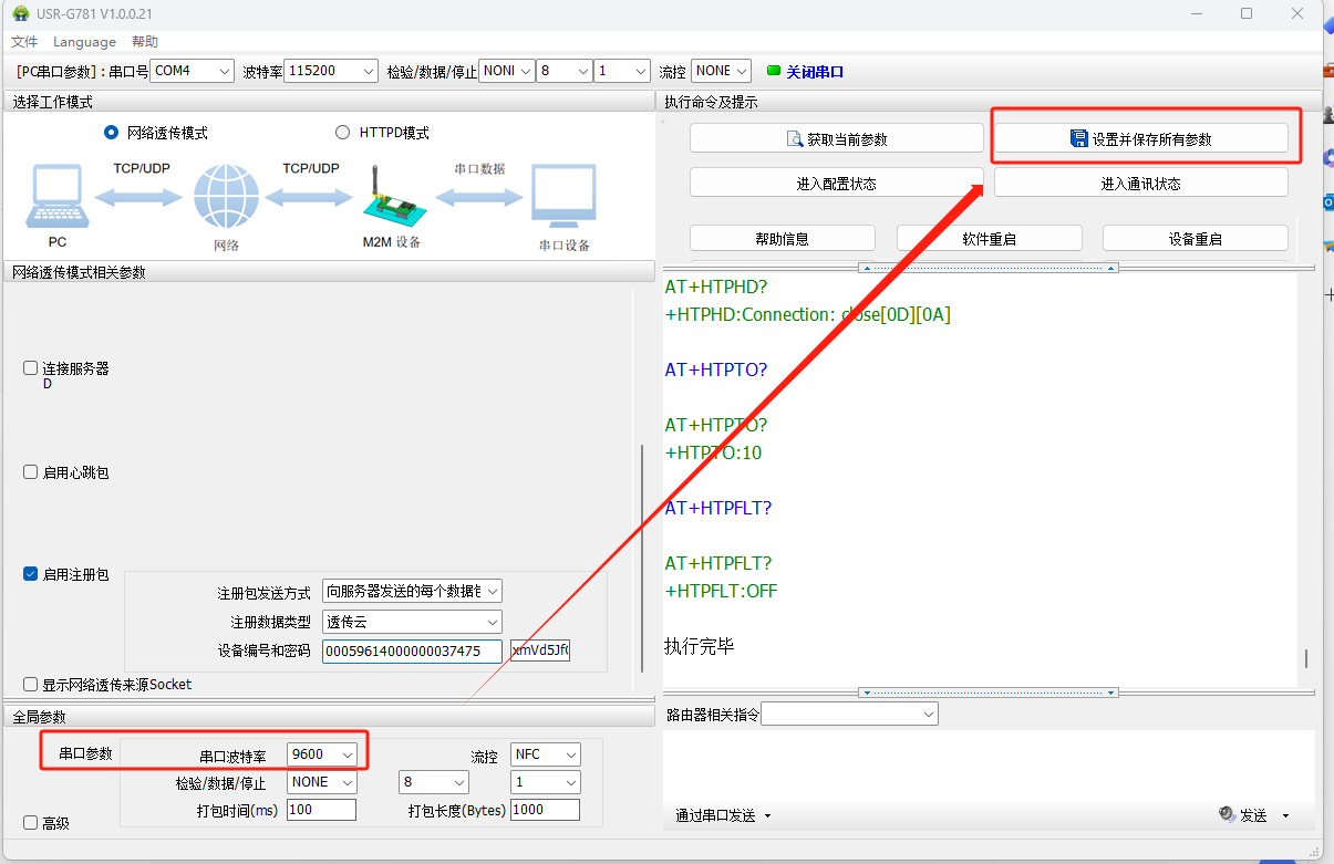 可以從全局參數中修改串口的波特率、校驗位等參數,然后點擊設置并保存參數