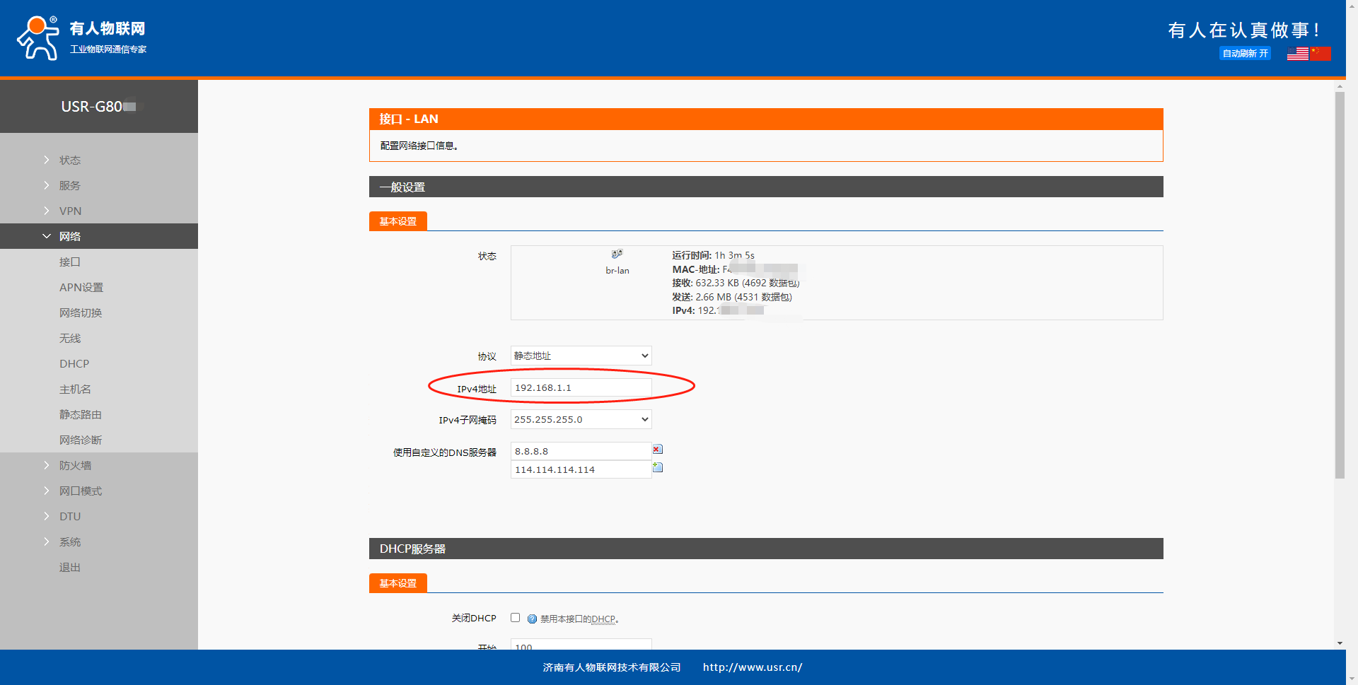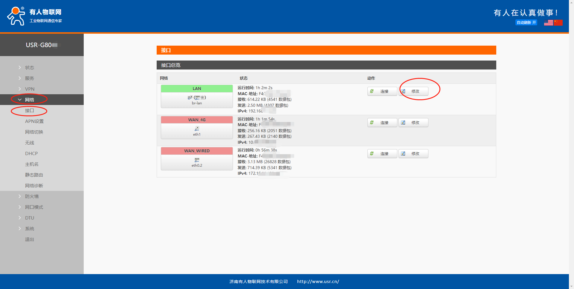 G80x(包括G806、G806s等以及G810)系列:網(wǎng)絡--接口--修改--IPV4地址--保存&應用