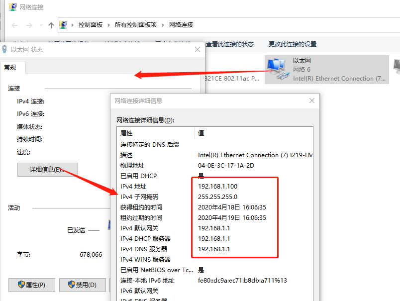 2、雙擊該網(wǎng)卡,顯示詳細(xì)信息,查看電腦獲取的Ip