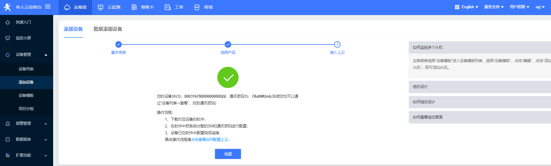 設(shè)備編號(hào)和密碼在有人云設(shè)備列表——查看——SN即設(shè)備編號(hào)