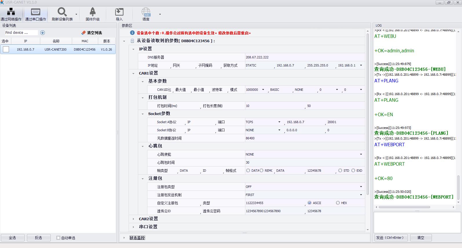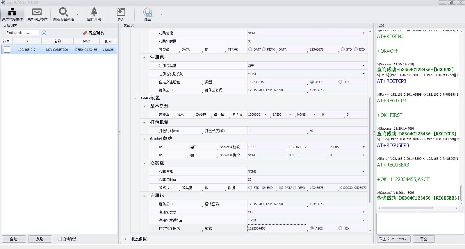 用CANET200設置軟件網(wǎng)絡搜索,讀取參數(shù)。