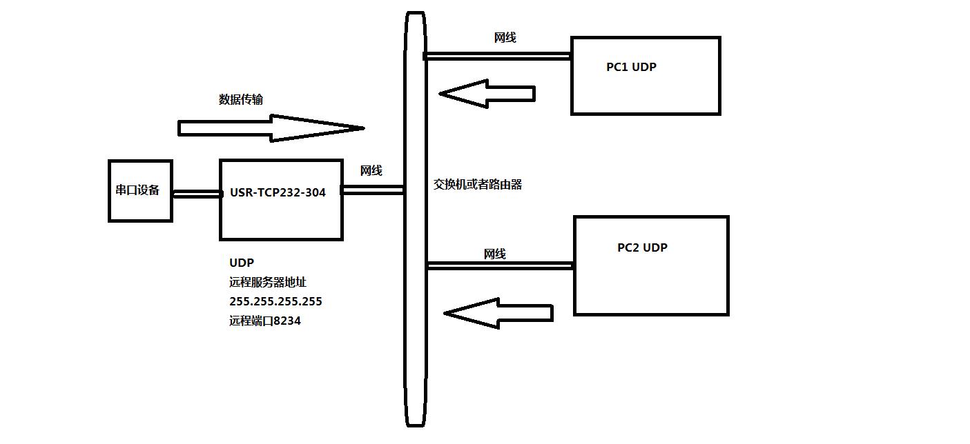 USR-TCP232-304 工作方式UDP 目標(biāo)IP 255.255.255.255 遠(yuǎn)程端口8234 本地端口50