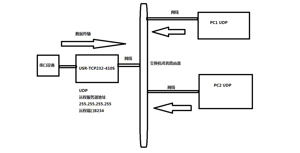 USR-TCP232-410S 工作方式UDP 目標(biāo)IP 255.255.255.255 遠(yuǎn)程端口8234 本地端口50