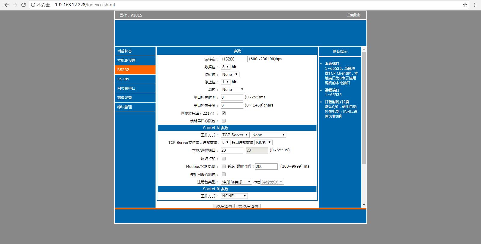 在瀏覽器輸入410S的Ip,可以登錄410S的內(nèi)置網(wǎng)頁。工作方式TCp server 本地端口23