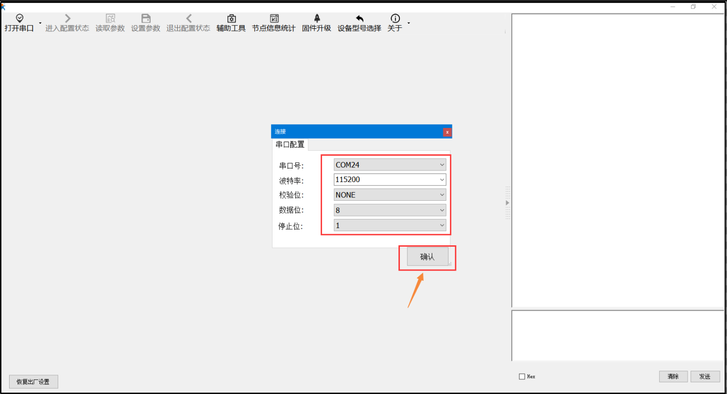 實際應用時,串口設置內的波特率、校驗位、數據位、停止需要配置為您206串口要要接的串口設備串口參數,不然數據會是亂碼,本次案例為默認參數未修改。 使用485串口線時流控配置為“485”,流控為485時也是可以使用232串口線通信的。