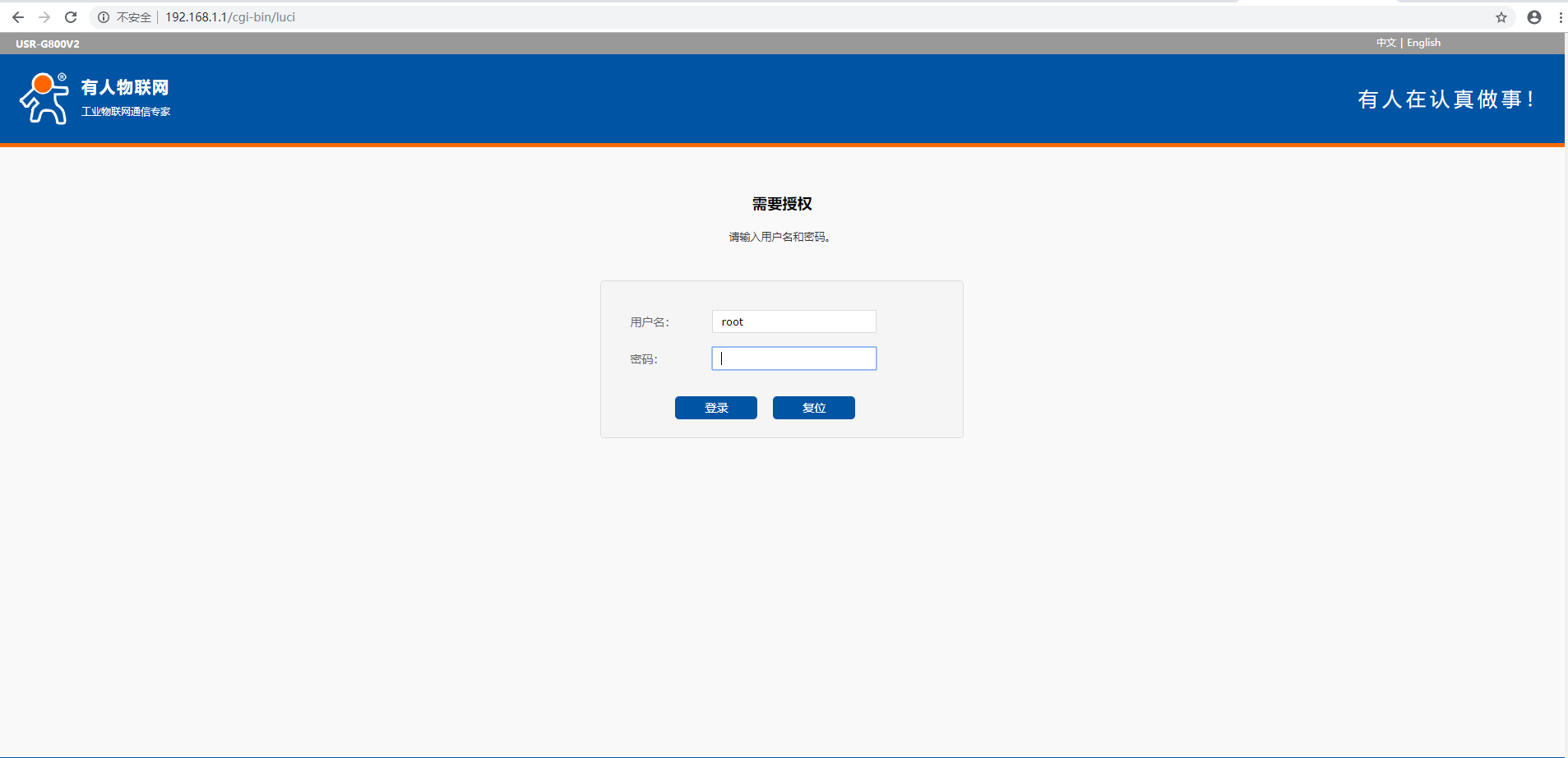 3、通過(guò)電腦獲取到的網(wǎng)關(guān)進(jìn)入內(nèi)置網(wǎng)頁(yè),出廠默認(rèn)用戶名密碼:root,root。
