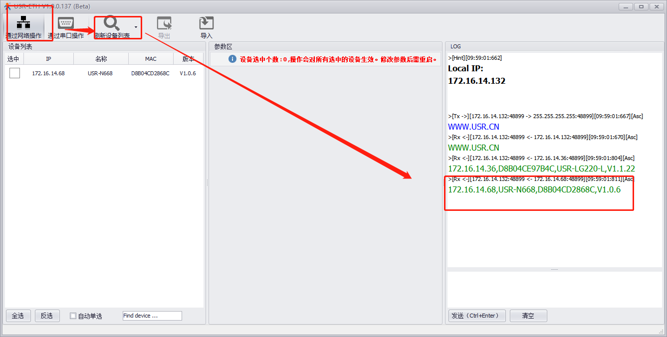668網(wǎng)線直連路由器,電腦設(shè)置為DHCP網(wǎng)線直連路由器,打開668設(shè)置軟件,通過網(wǎng)絡(luò)搜索,刷新設(shè)備列表,可以確認668此時的IP為:172.16.14.68。668的IP也可以在路由器內(nèi)置網(wǎng)頁確認。用路由器已分配的IP進入668內(nèi)置網(wǎng)頁。