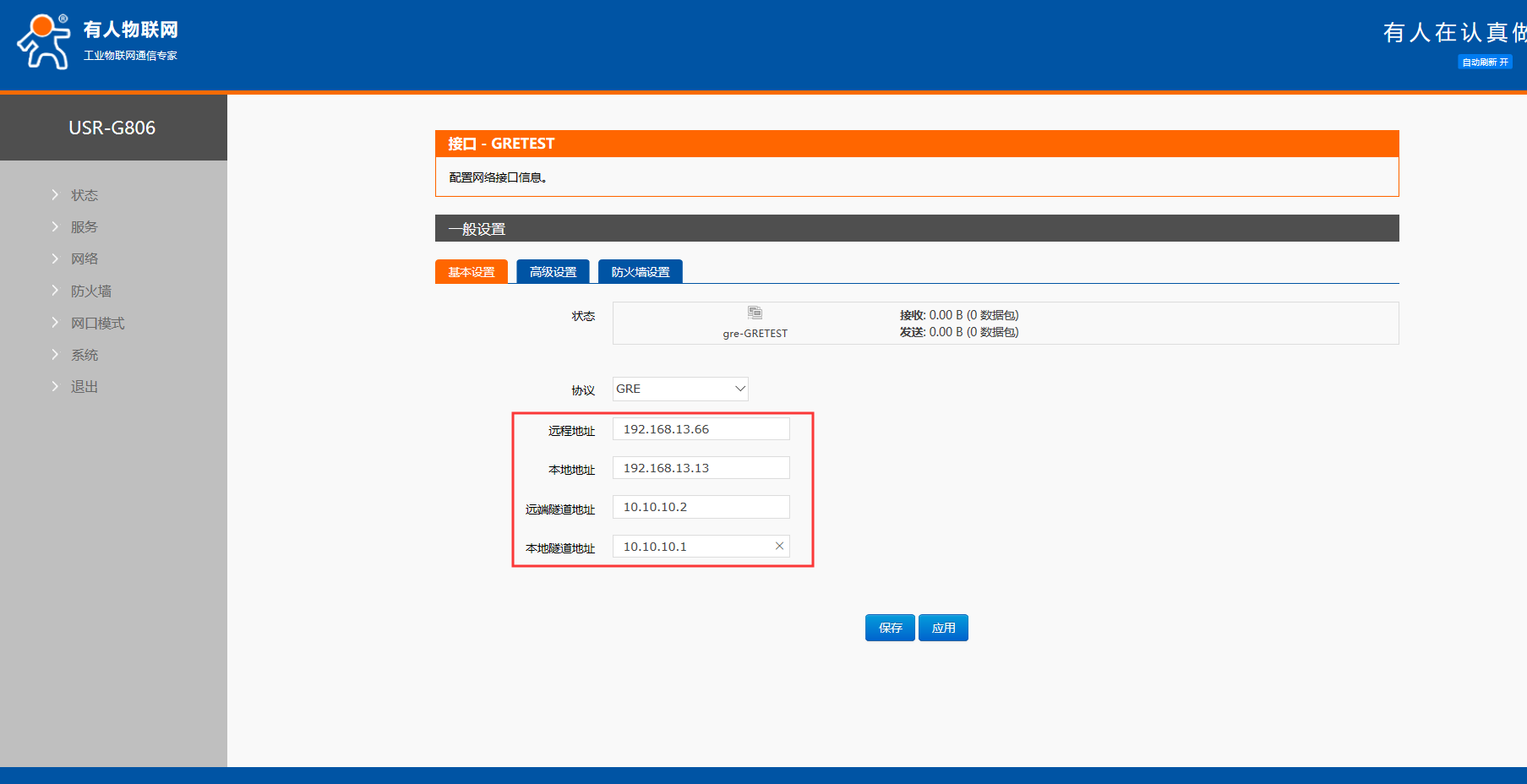 遠程地址:對端GRE的WAN口IP地址