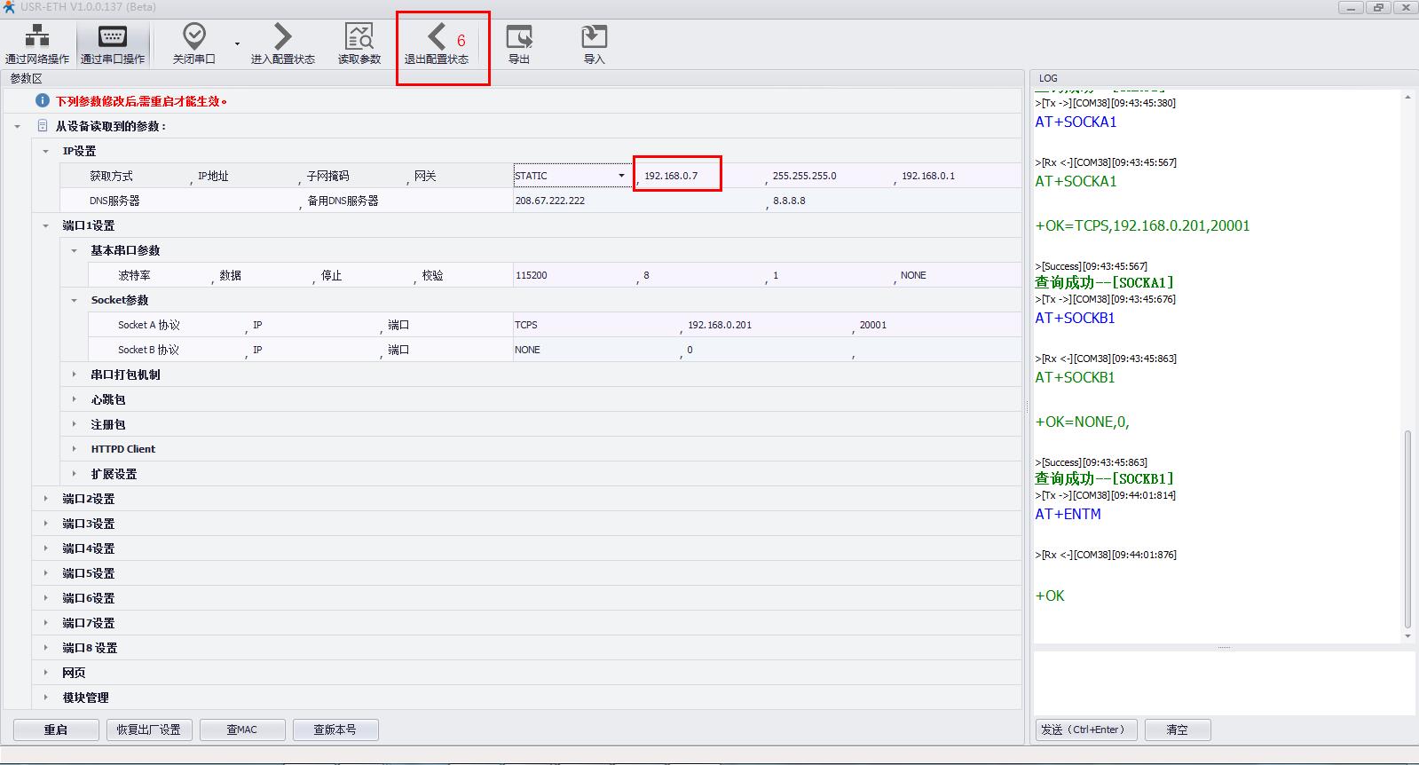 用N668設(shè)置軟件串口搜索,進(jìn)入配置狀態(tài),獲取N668的參數(shù)設(shè)置。