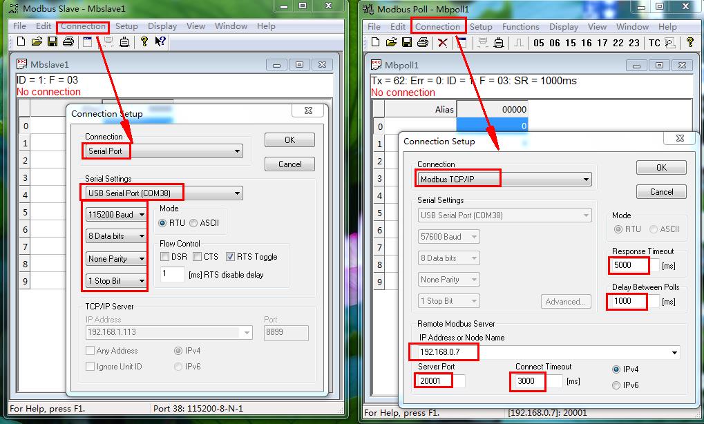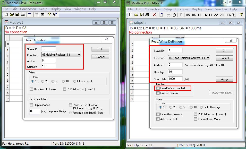 2、MODBUS SLAVE軟件和MODBUS POLL軟件參數(shù)設(shè)置