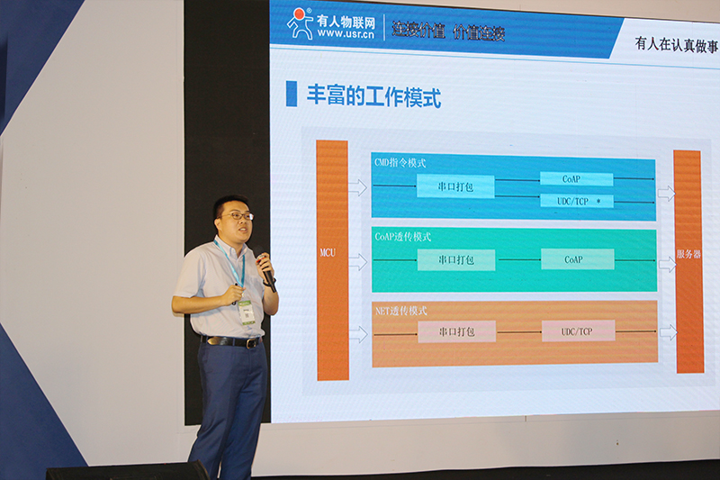 有人旗下模塊子公司研發(fā)經(jīng)理王玉鋒現(xiàn)場(chǎng)講解NB模組