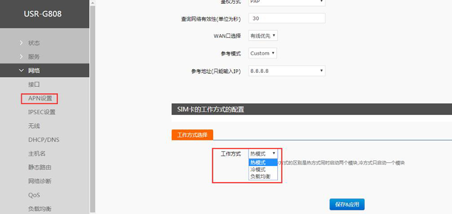 指令來判斷網(wǎng)絡(luò)是否健在,是在系統(tǒng)的定時任務(wù)來啟動的。方式選擇:有線優(yōu)先、熱模式和冷模式(默認(rèn)為熱模式)。
