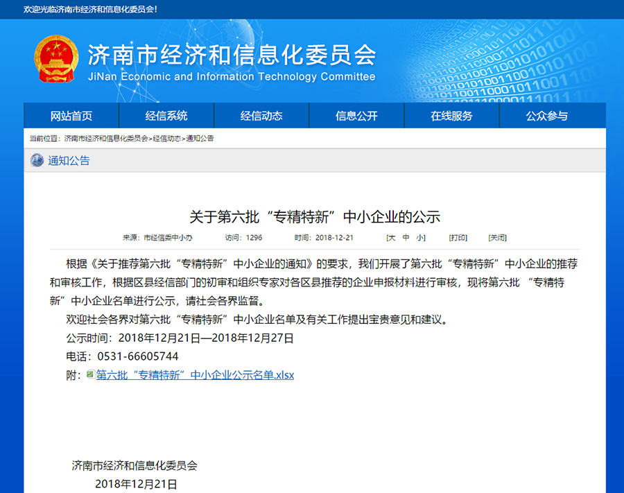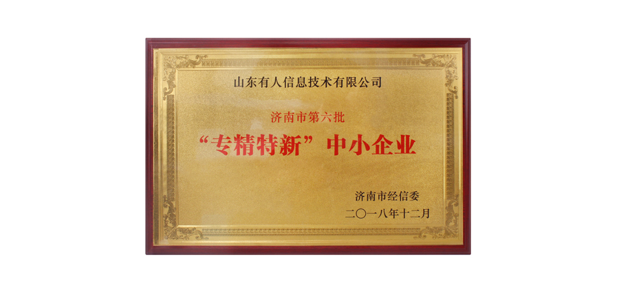 12月21日,有人物聯(lián)網(wǎng)榮獲由濟(jì)南市經(jīng)濟(jì)和信息化委員會評選的“第六批專精特新中小企業(yè)”稱號。