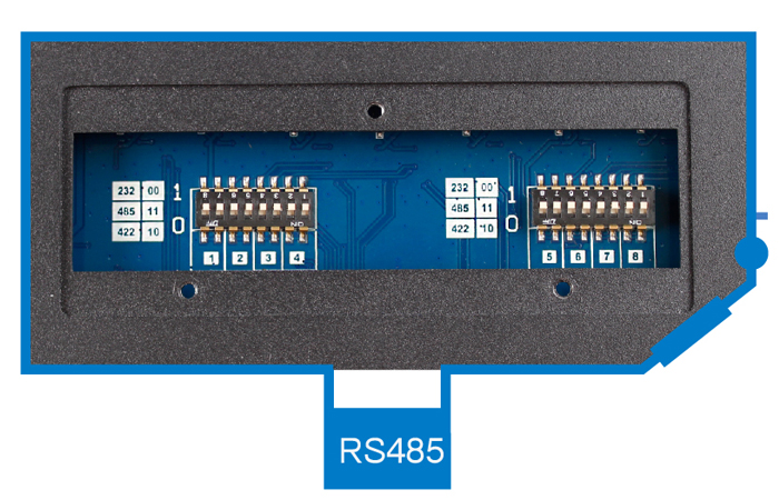 為了減小體積,方便機柜中擺放,節(jié)省設(shè)備接口空間,做成RJ45封裝形式,使用時通過DB9-M 轉(zhuǎn) RJ45轉(zhuǎn)換器即可實現(xiàn)輕松聯(lián)網(wǎng)。由于RS232模式使用相對較多,因此出廠默認為RS232模式。如果使用RS485模式或RS422模式可調(diào)整對應(yīng)的撥碼開關(guān)。