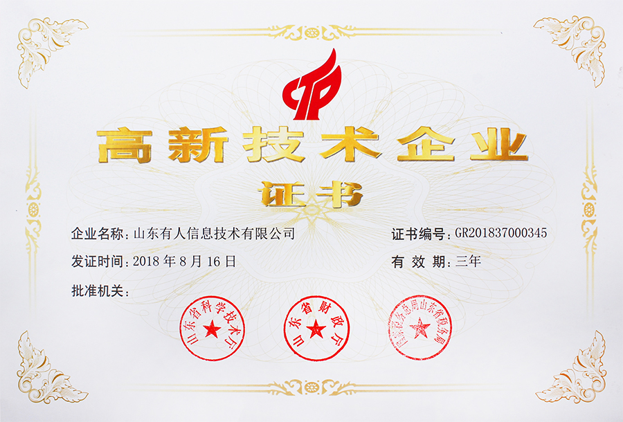 山東有人信息技術(shù)有限公司喜獲“國家高新技術(shù)企業(yè)”認(rèn)證證書,標(biāo)志著有人物聯(lián)網(wǎng)正式邁入“國家級(jí)高企”序列。