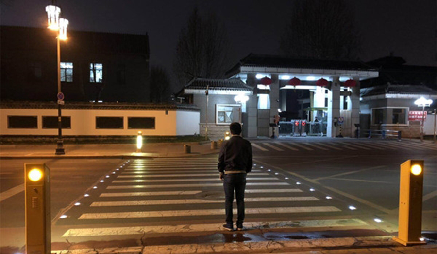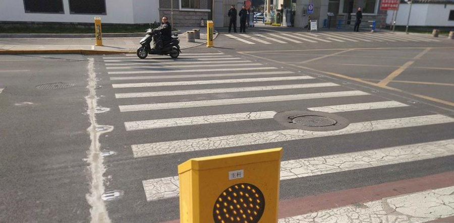 當沒有行人通過馬路時,系統(tǒng)不啟動;當有行人踏上斑馬線時,系統(tǒng)自動啟動。通過這種“聲光結(jié)合”的方式引導過往機車輛禮讓行人,確保行人安全過馬路。