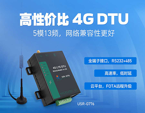 G776同樣用于RS232/485與4G網(wǎng)絡(luò)的數(shù)據(jù)雙向透?jìng)鳌?/p>