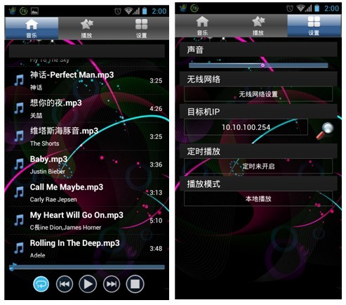 提供可以直接使用的安卓軟件,無線播放音樂。