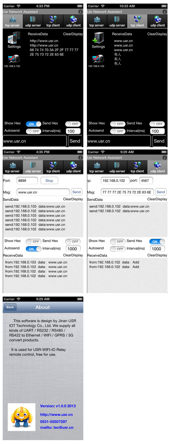 USR-SocketTools適用于任何一款網(wǎng)絡(luò)設(shè)備,支持TCP Client、TCP Server、UDP,通過(guò)蘋(píng)果手機(jī)即可實(shí)現(xiàn)向指定IP、端口發(fā)送數(shù)據(jù),方便調(diào)試。