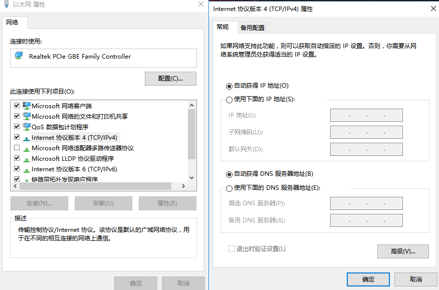 其次,在電腦端設(shè)置聯(lián)網(wǎng)方式為自動獲取IP地址。點(diǎn)擊“控制面板”——“網(wǎng)絡(luò)連接”——“本地連接”,右擊“屬性”——“tcp/ip協(xié)議”——“屬性”進(jìn)行設(shè)置。如下圖所示。