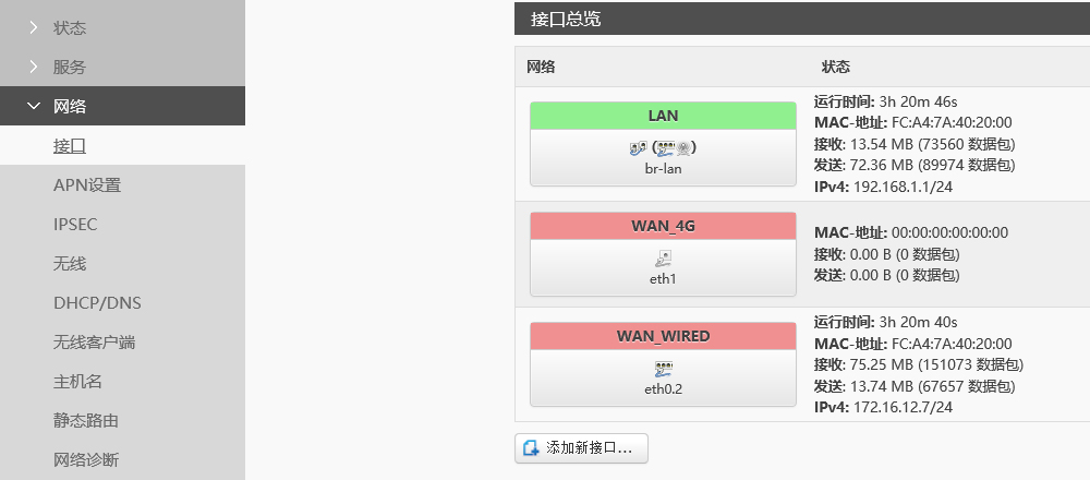 雙LAN+4G組網(wǎng)適合在局域網(wǎng)內(nèi)盡量多的接入網(wǎng)口設(shè)備,同時使用4G網(wǎng)絡(luò)連接無線端設(shè)備,省去了布線成本。設(shè)置方法如上圖,將網(wǎng)口模式選擇為“LAN”口即可。