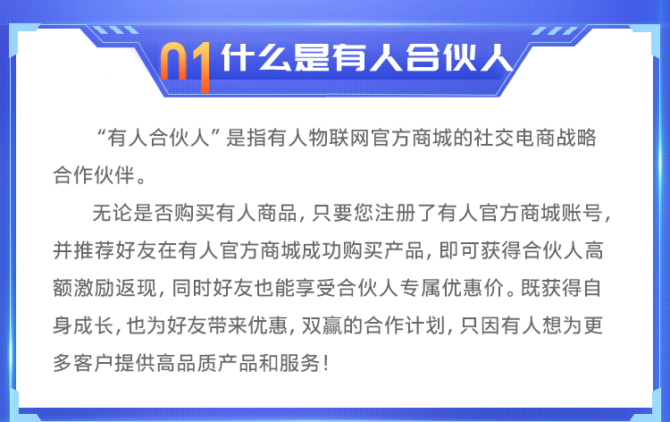 為答謝老客戶一直以來對有人品牌的支持與信賴,有人物聯(lián)網(wǎng)特此推出“合伙人”(點(diǎn)擊藍(lán)字快速參加)活動(dòng),希望通過本活動(dòng),為廣大老客戶及身邊朋友帶來“雙重福利”。