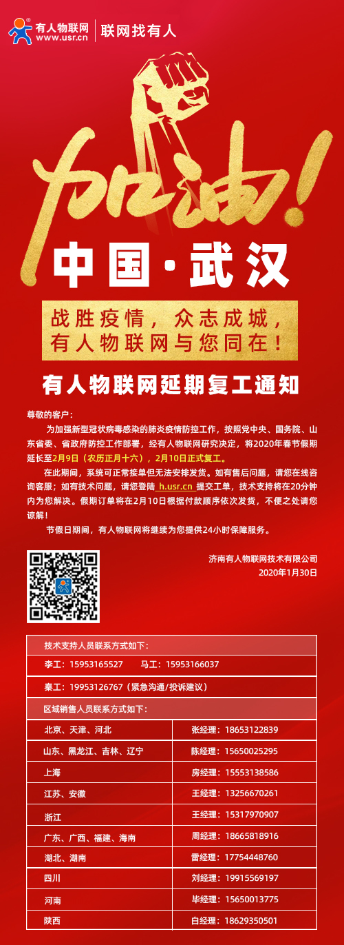 為加強(qiáng)新型冠狀病毒感染的肺炎疫情防控工作,按照黨中央、國(guó)務(wù)院、山東省委、省政府防控工作部署,經(jīng)有人物聯(lián)網(wǎng)研究決定,將2020年春節(jié)假期延長(zhǎng)至2月9日(農(nóng)歷正月十六),2月10日正式復(fù)工。