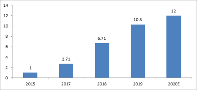(近年移動(dòng)物聯(lián)網(wǎng)連接數(shù),2020為預(yù)期)