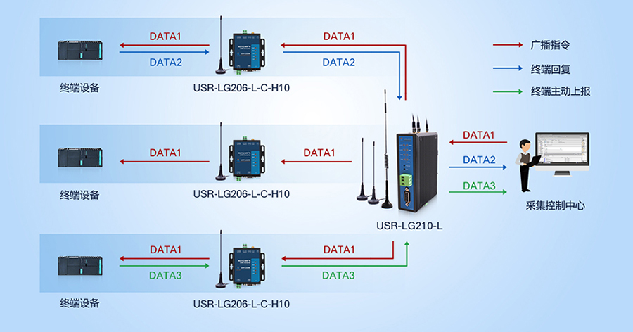 串口設(shè)備與串口設(shè)備之間通過兩個(gè)lora終端設(shè)備進(jìn)行點(diǎn)對(duì)點(diǎn)傳輸,無需任何數(shù)據(jù)傳輸協(xié)議。