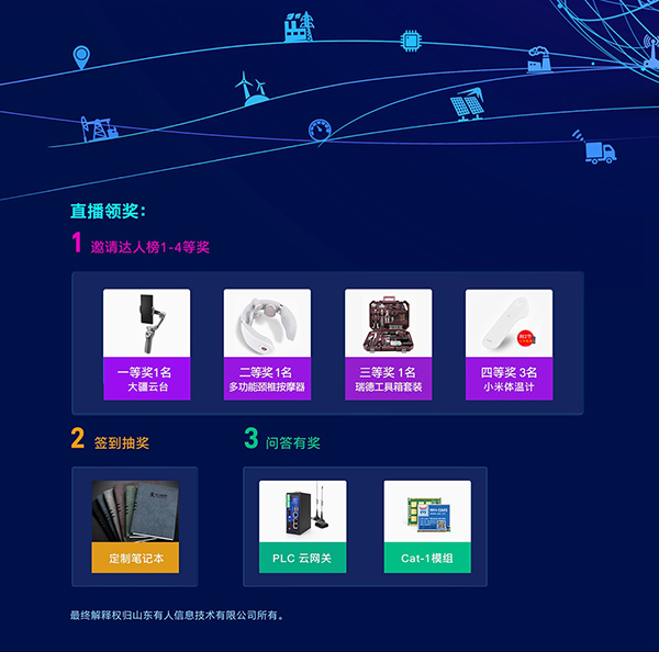 本次直播,有人物聯(lián)網(wǎng)特邀公司云服務、智能硬件等相關產(chǎn)品負責人,為大家提供“智能硬件上云服務”、“智能方案展示”、“5G/Cat-1/NB-IoT新品介紹”等干貨;同時,直播期間參與互動,還會有好禮相送,歡迎大家參加。