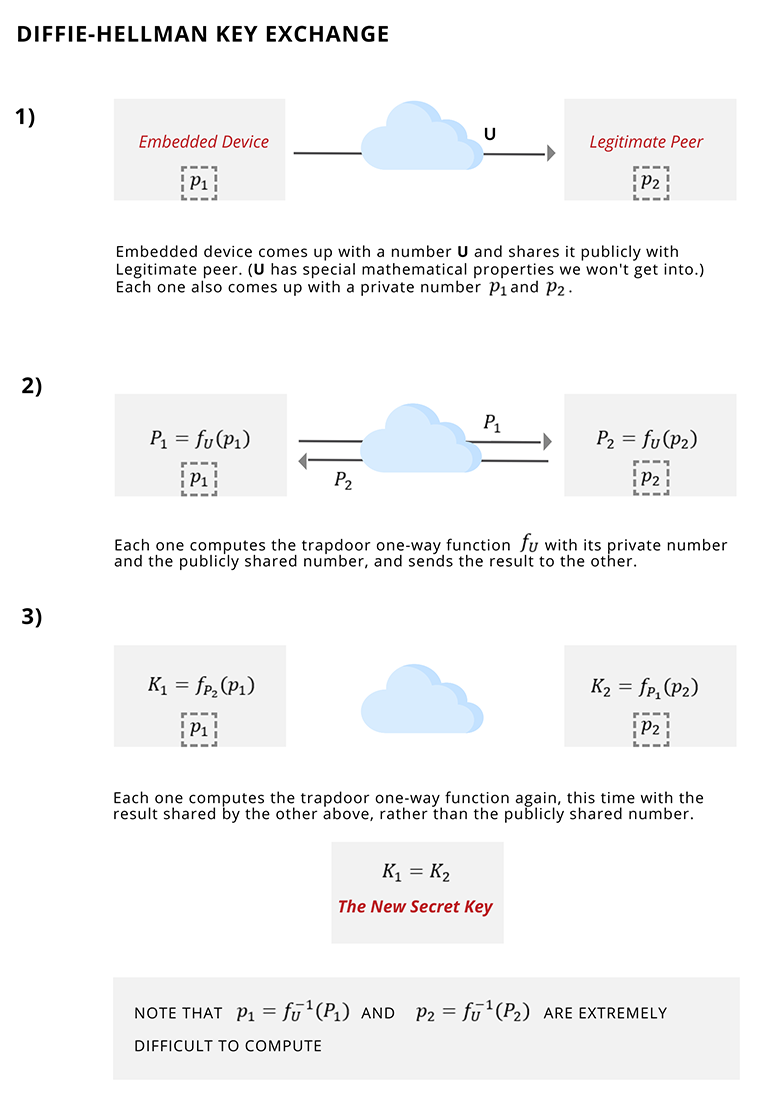 在任何時(shí)候,以我們選擇的任何頻率,我們都可以為嵌入式設(shè)備及其需要與之通信的任何對(duì)等方提供一種方法,以安全的方式商定新的密鑰。此新密鑰隨后可以用于對(duì)稱(chēng)加密和解密,直到密鑰再次更改為止。如果發(fā)現(xiàn)任何秘密密鑰,那么黑客可以希望解密的傳輸數(shù)據(jù)量將取決于調(diào)用此新密鑰協(xié)商機(jī)制的頻率。