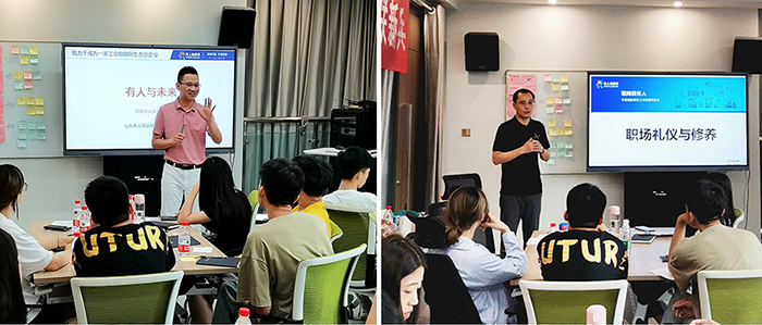 接下來,人力部幽默大方的楊老師以及年輕可愛的姬老師分別就《公司概況及文化》和《公司管理制度》,做了詳細(xì)的講解,以幫助小萌新們盡快熟悉并融入公司,聽完之后同學(xué)們感嘆:選擇了一家好公司,原來公司有這么完善的管理制度及流程吖。