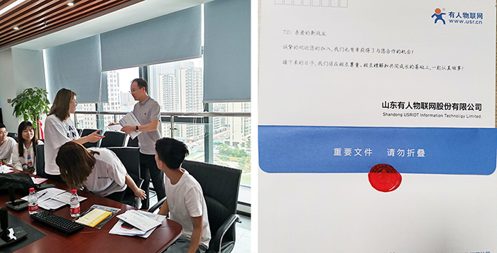 提交入職材料,領(lǐng)取公司對自己的期許(《董事長給新員工的一封信》&《有人宣言 》),開啟職場人生。