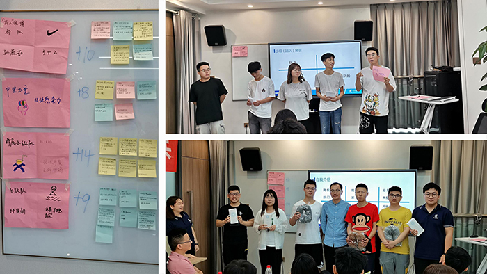 在集團(tuán)講師楊老師的帶領(lǐng)下,完成了破冰游戲,各位新同學(xué)彼此認(rèn)識(shí)并組成了有趣的小隊(duì)(比如“海底小縱隊(duì)”)。并且完成了2天的培訓(xùn)小目標(biāo)。經(jīng)過公開公平公正的投票規(guī)則,票選出了公認(rèn)為展示最佳的小分隊(duì),當(dāng)然,小獎(jiǎng)品少不了啦。