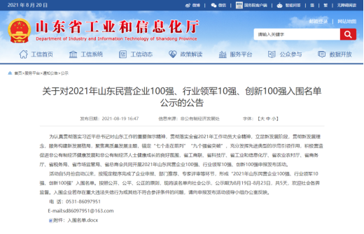 19日,山東省工信廳發(fā)布了關(guān)于對2021年山東民營企業(yè)100強(qiáng)、行業(yè)領(lǐng)軍10強(qiáng)、創(chuàng)新100強(qiáng)入圍名單公示的公告,山東有人物聯(lián)網(wǎng)股份有限公司成功入圍山東民營企業(yè)行業(yè)領(lǐng)軍10強(qiáng)!