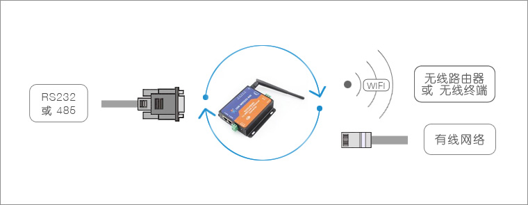 一句話解釋:實現(xiàn)串口(RS232/485)與WIFI的雙向透明傳輸?shù)脑O(shè)備。