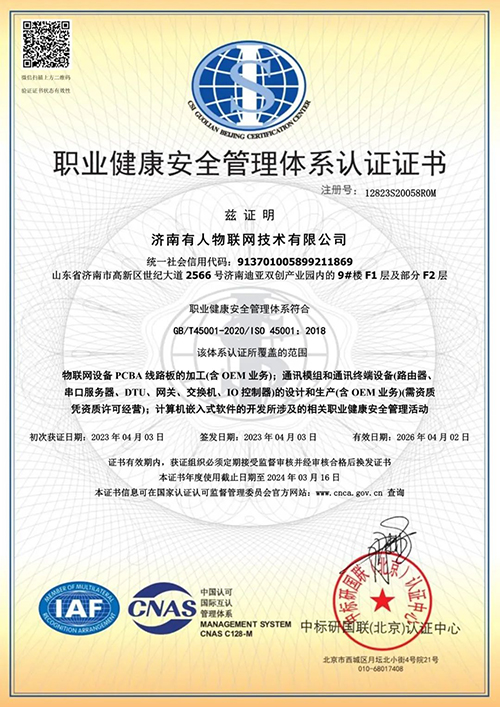 近日,經(jīng)過中標(biāo)研國聯(lián)(北京)認(rèn)證中心的嚴(yán)格審核,濟南有人物聯(lián)網(wǎng)技術(shù)有限公司順利通過ISO“三體系”——ISO9001質(zhì)量管理體系、ISO24001環(huán)境管理體系、ISO45001職業(yè)健康安全管理體系的認(rèn)證。