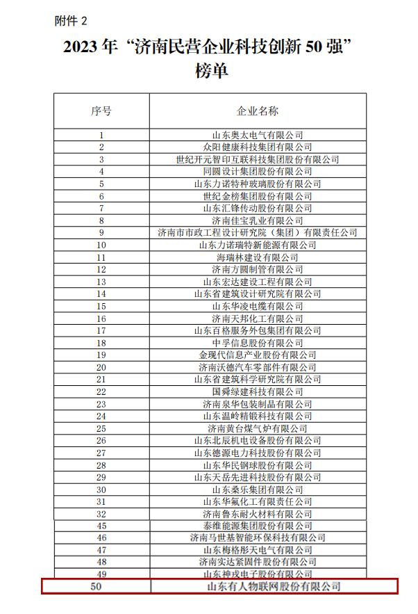 10月10日上午,濟(jì)南市委市政府召開新聞發(fā)布會,濟(jì)南市民營經(jīng)濟(jì)局、濟(jì)南市工商聯(lián)重磅發(fā)布“2023年濟(jì)南民營企業(yè)100強”系列榜單,包括“2023年濟(jì)南民營企業(yè)科技創(chuàng)新50強”和“2023年濟(jì)南民營企業(yè)成長潛力50強”。綜合評估企業(yè)經(jīng)營規(guī)模、利潤稅收、科技創(chuàng)新、員工就業(yè)、黨組織建設(shè)等多項因素,有人物聯(lián)榮登濟(jì)南民企百系列榜單,榮獲2023年濟(jì)南市民營企業(yè)科技創(chuàng)新50強企業(yè)。