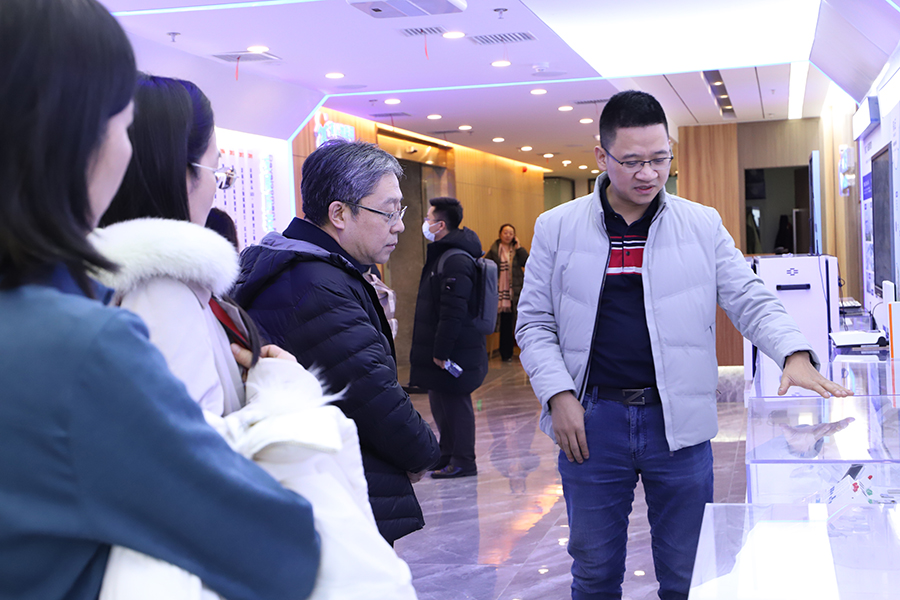 在參觀過程中,王文遠副局長對有人物聯(lián)網(wǎng)推動產(chǎn)業(yè)數(shù)字化發(fā)展、促進新一代信息技術與行業(yè)融合等方面取得的成果與成績給予了認可與表揚,仔細詢問了企業(yè)發(fā)展面臨的問題與挑戰(zhàn)、相關政策支持訴求等,征求了企業(yè)從服務商視角對當前指標體系的意見與建議,指出企業(yè)要牢牢抓住數(shù)字經(jīng)濟發(fā)展機遇,圍繞國家發(fā)展戰(zhàn)略推動企業(yè)技術創(chuàng)新、成果轉化,助推中國數(shù)字經(jīng)濟高質量發(fā)展。