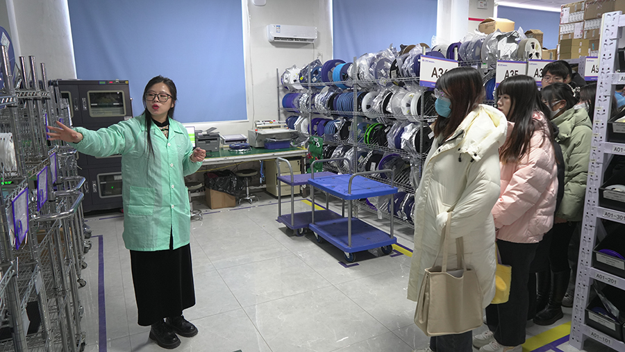 在供應鏈工廠生產經理楊華的帶領下,同學們輪次參觀了供應鏈工廠的原材料庫、SMT生產車間以及總裝和成品庫,深入了解有人物聯(lián)供應鏈工廠從供應商管理到制程的品質管理,觀看了物聯(lián)網(wǎng)通訊設備貼片、插件、三防涂覆、測試和組裝的全流水線操作,感受了智能化、自動化流水線設備精度和速度。在參觀過程中,同學們面對企業(yè)一線生產流程或駐足,若有所思;或聆聽,若有所悟,積極主動提問內心的疑惑,工廠講解人員也耐心細致地對大家的問題逐一進行解答,引導同學們打好專業(yè)基礎,對未來就業(yè)方向盡早規(guī)劃。