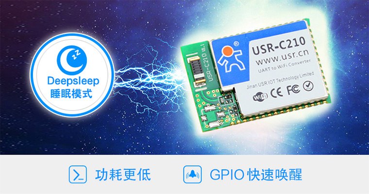 wifi模塊C210可以通過設(shè)置倒計(jì)時(shí)進(jìn)入Deepsleep模式,維持在90ua的超低功耗,可以通過GPIO快速喚醒。