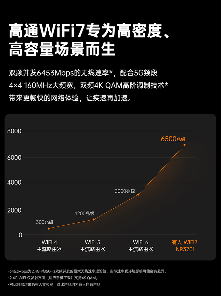 ,采用最新一代雙高通5G WiFi7方案,適用于