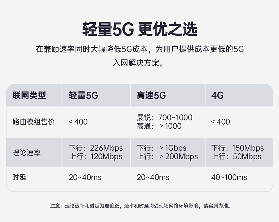? 【輕量5G,降本增效】采用RedCap技術(shù),在兼顧速率的同時大幅降低5G成本,為用戶提供成本更低的5G入網(wǎng)解決方案。