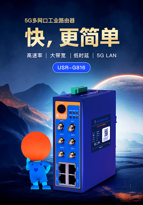 在這場產(chǎn)業(yè)變革中,以USR-G816為代表的5G工業(yè)路由器,正通過持續(xù)的技術迭代重新定義工業(yè)通信標準。其700Mbps的實測下載速率、0.5ms的空口時延、99.999%的可靠性指標,正在為智能制造、智慧能源、智能交通等領域注入新動能。當5G遇見工業(yè)互聯(lián)網(wǎng),一場關于效率與創(chuàng)新的革命已然拉開帷幕。