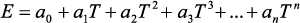 E = 熱電電壓(毫伏) an = 熱電偶類型相關的多項式系數(shù) T = 溫度(°C) n = 多項式階數(shù) |