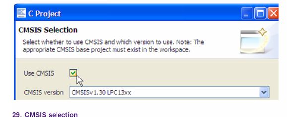 如果使用的是基于Cortex-based的部分,將會詢問是否使用CMSIS。CMSIS支持Cortex控制器的軟件接口標準。CMSIS定義了一個通用的訪問外設(shè)寄存器和定義中斷的方式。選中“Use CMSIS”復(fù)選框并單擊“Next”。如下圖所示。