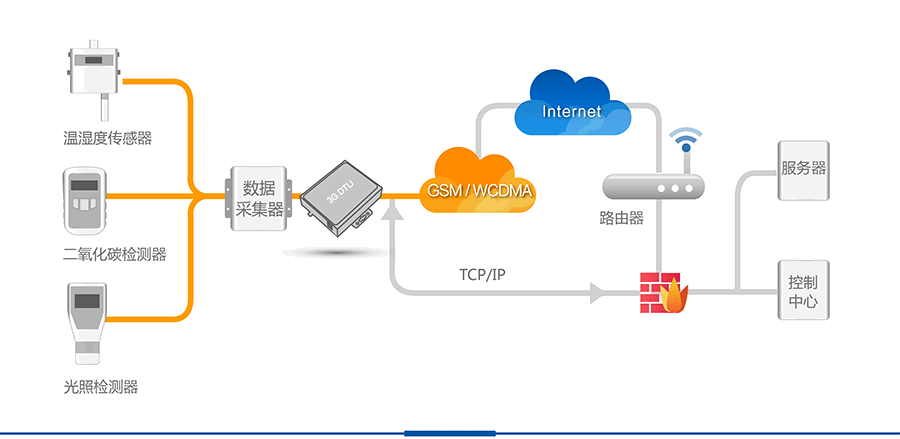 在智能農(nóng)業(yè)企業(yè)中,3G DTU可以將農(nóng)業(yè)大棚里的各類傳感器數(shù)據(jù)進(jìn)行采集,并傳輸?shù)竭h(yuǎn)程服務(wù)器及 控制中心,實(shí)現(xiàn)數(shù)據(jù)實(shí)時(shí)監(jiān)測,促進(jìn)農(nóng)業(yè)物聯(lián)網(wǎng)的發(fā)展。